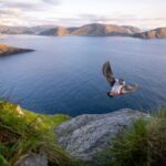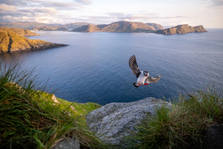 Onder de tentoongestelde werken bevinden zich onder andere een indrukwekkende foto van een papegaaiduiker op het Noorse eiland Runde, waar elk voorjaar duizenden vogels samenkomen om te broeden. Na lang wachten landde precies op het juiste moment een nieuwsgierige papegaaiduiker op een rotsrichel bij de kliffen. “De kou, de wind en het ongemak waren in één klap vergeten”, vertelt Brinkman. “Soms draait fotografie vooral om geduld en timing.”