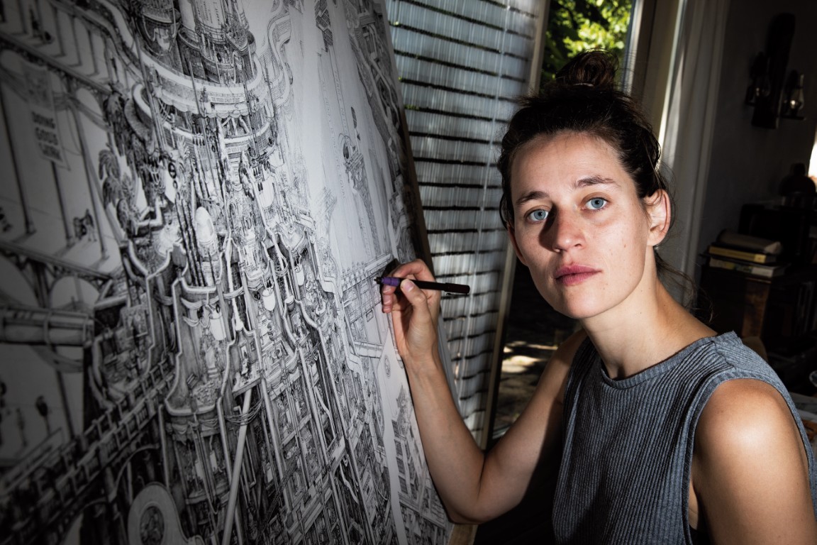 Een van haar meest opmerkelijke werken is ‘Het waterwerk van ons Geld’. Dit werk is uiteraard tijdens het Kunstmoment te zien in Herberg de Pol en is al eerder tentoongesteld in Rijksmuseum Twenthe.